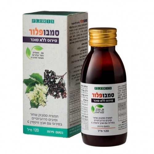 סמבופלור סירופ 120 מ"ל ללא סוכר בטעם פירות FLORIS Sambuflor